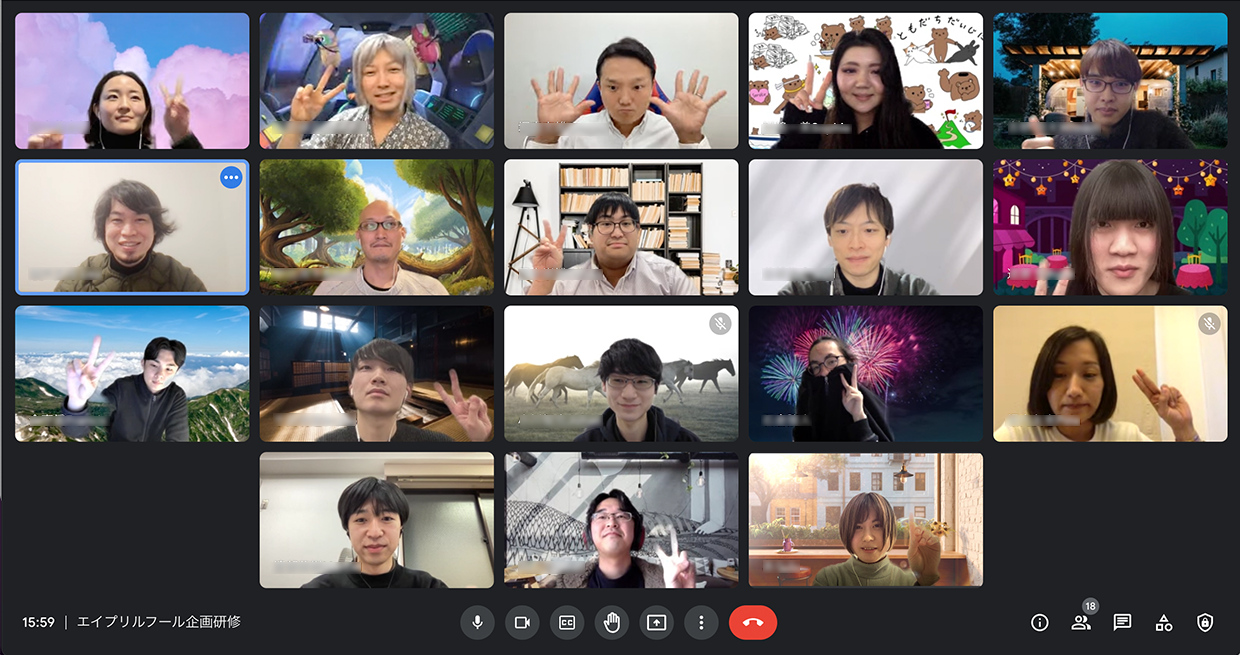 まずはここ数年、毎年実施している2月にエイプリルフールに何をやるか決めるための研修を行いました。