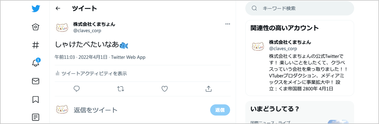 そんなわけで、2022年のエイプリルフールは「くまちょんに会社を乗っ取られた」という内容のエイプリルフールになりました。 斬新すぎませんか!??!!乗っ取られなんて楽しそうでしかない。 昨年、一昨年はサービスのリリースという内容だったので、今までのクラベスのエイプリルフールと雰囲気がガラッと変わった内容になりました。キャッチーでポップな内容はもとより、キャラが動くという点でも今までやったことがない部分なので惹かれたメンバーが多くいたようです。